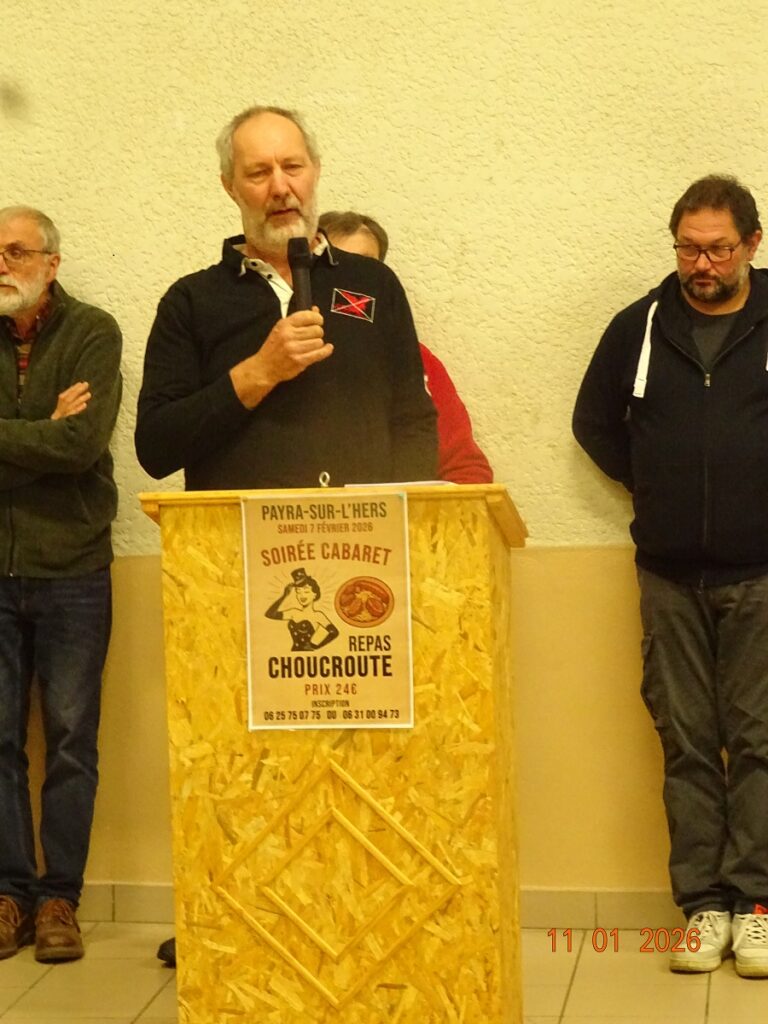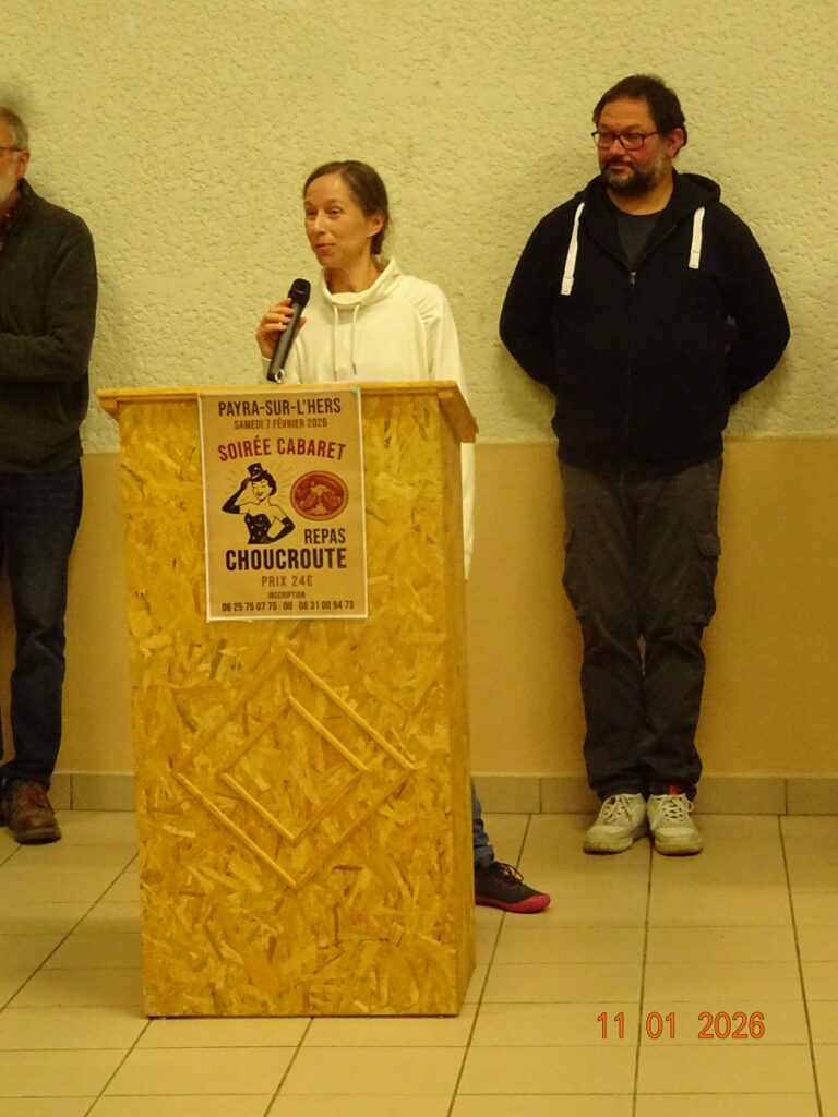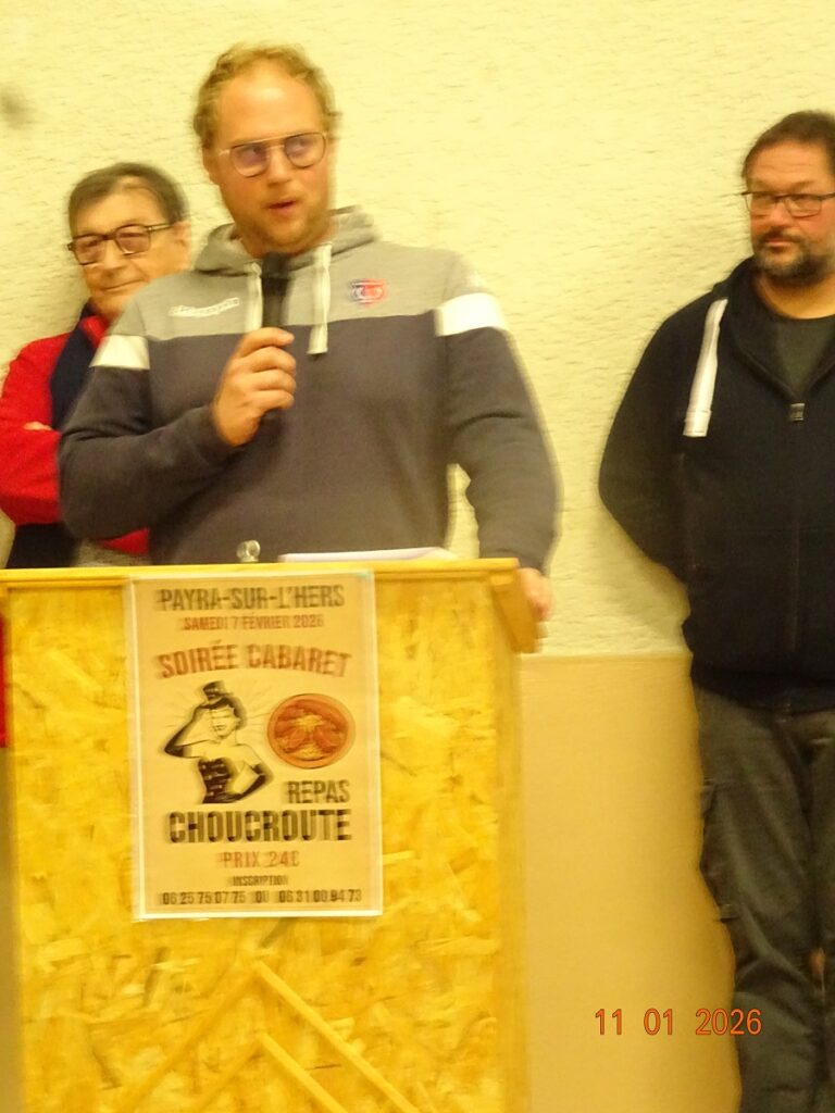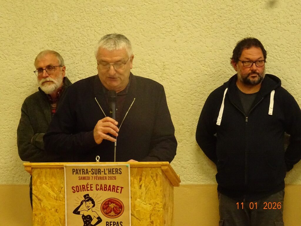 Dans la salle des fêtes » Jean Grillères » Monsieur le Maire Bernard Pech, entouré des élus de la commune a souhaité les voeux de bonne année 2026 aux habitants de Payra.